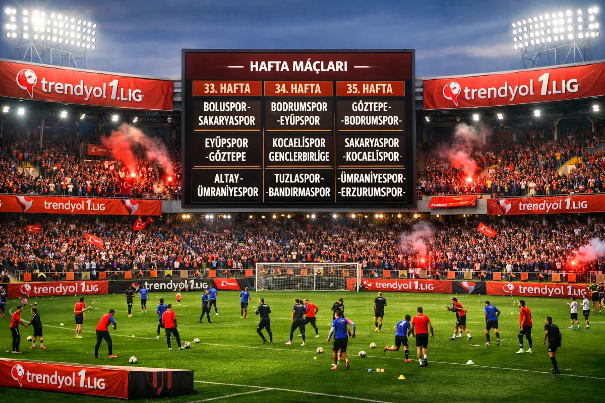 Türkiye Futbol Federasyonu, Trendyol 1. Lig’de 33, 34 ve 35. haftalara dair maç programını açıkladı. Futbolseverler, dört gözle beklenen bu mücadelelerin tarihlerini ve karşılaşmaları merakla bekliyor. İşte detaylar: